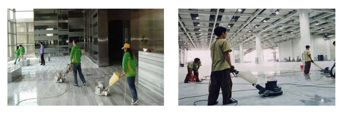 2. 石材翻新:針對磨損、劃痕、失去光澤的石材,利用打磨機配合不同目數的磨片,從粗磨到細磨逐步進行打磨,消